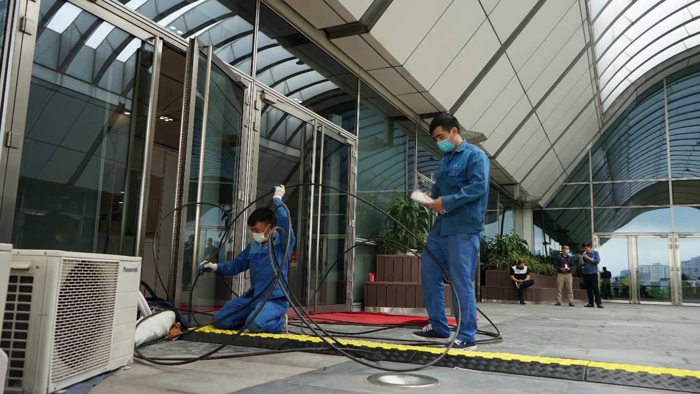 Tại Trung tâm báo chí và Trung tâm truyền hình (đặt tại Trung tâm Hội nghị Quốc gia), VNPT cũng đã tăng cường thêm trạm 3 phát sóng 5G và các trạm phát sóng 3G/4G, điều động 3 xe chuyên dụng phát hình vệ tinh phục vụ cho công tác truyền dẫn tín hiệu truyền hình qua vệ tinh cho các hãng thông tấn trong khu vực. |