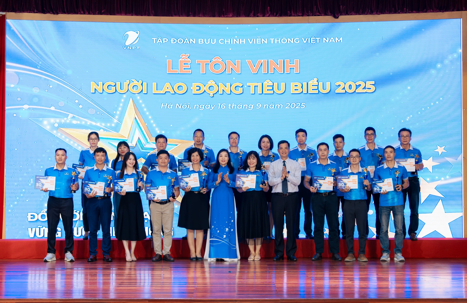 Ngày16/9/2025, tại Hà Nội, Tập đoàn VNPT và Công đoàn VNPT tổ chức Lễ tôn vinh người lao động tiêu biểu, khen thưởng những cá nhân xuất sắc và có nhiều đóng góp cho sự phát triển chung – đại diện cho đội ngũ người lao động ở các đơn vị, địa bàn trên toàn mạng lưới.