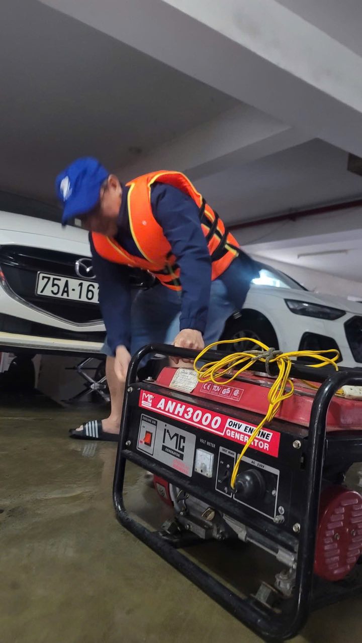 Ông Phạm Ngọc Hiệp, Phó Giám đốc VNPT Huế trực tiếp tham gia công tác ứng cứu cho các trạm viễn thông tại Huế.